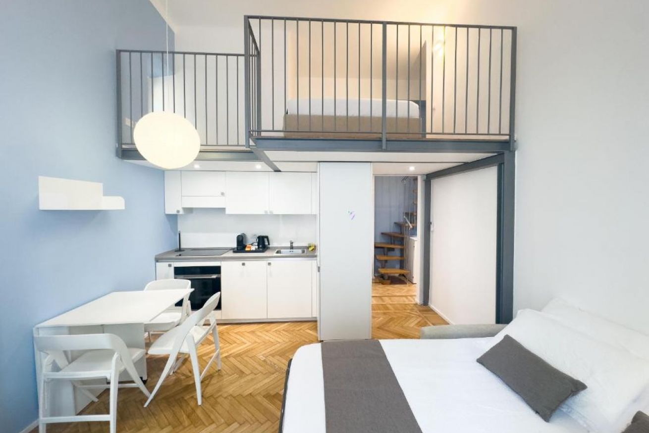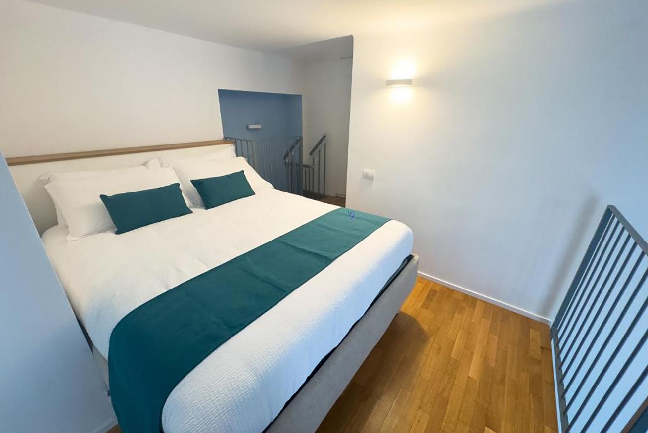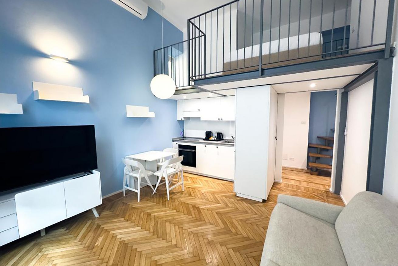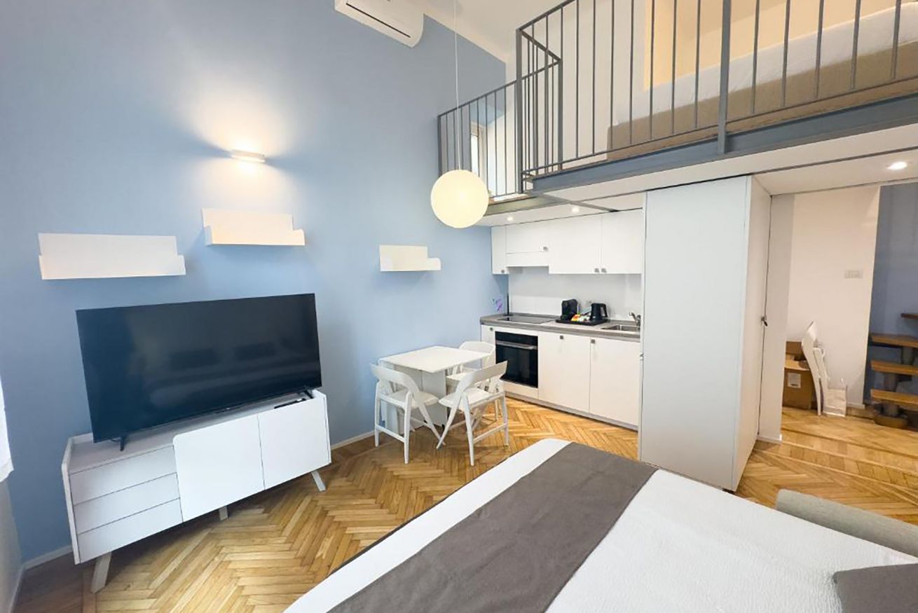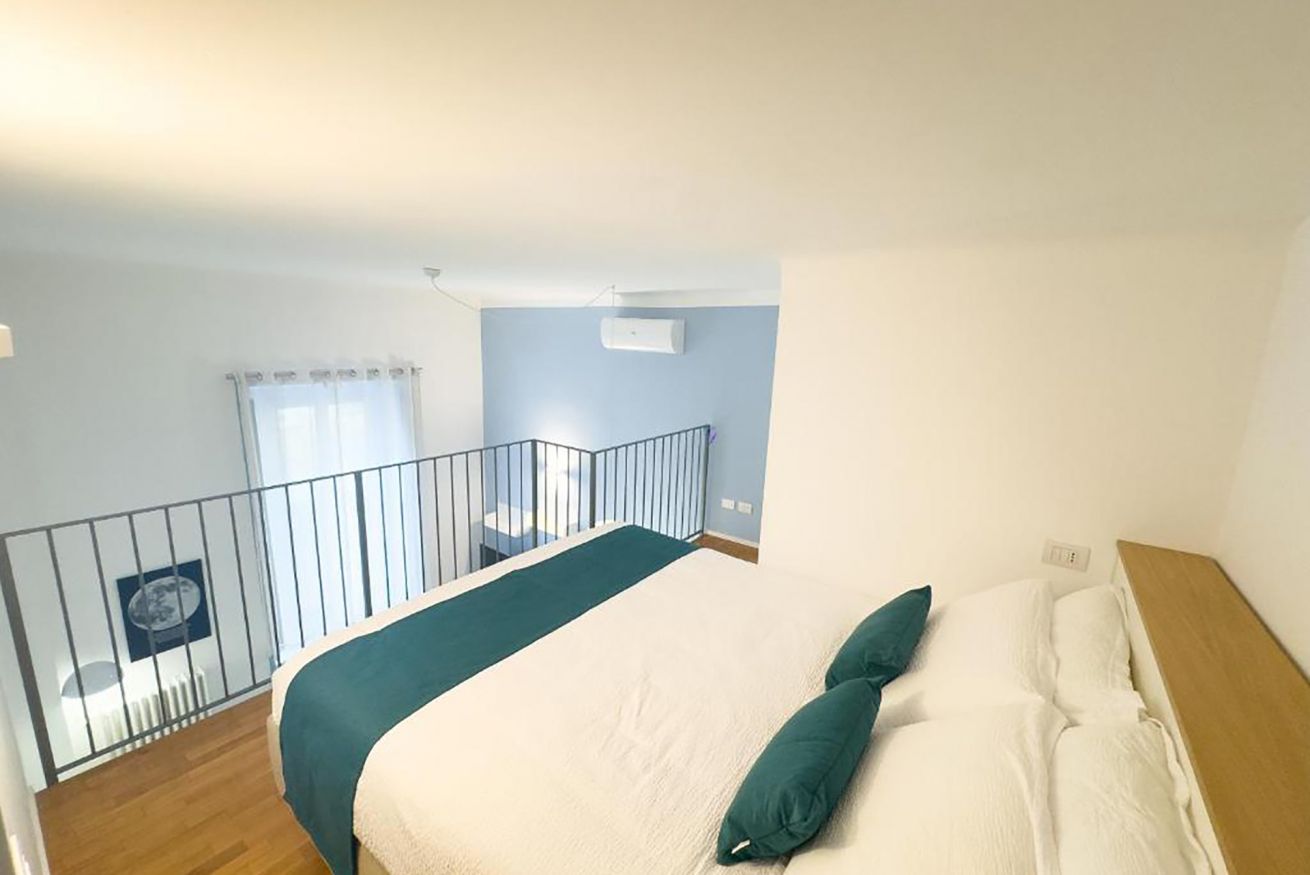 L'appartamento è composta da una camera da letto matrimoniale soppalcata, un bagno con doccia, una zona giorno con angolo cottura completamente attrezzato, zona pranzo e divano letto matrimoniale.