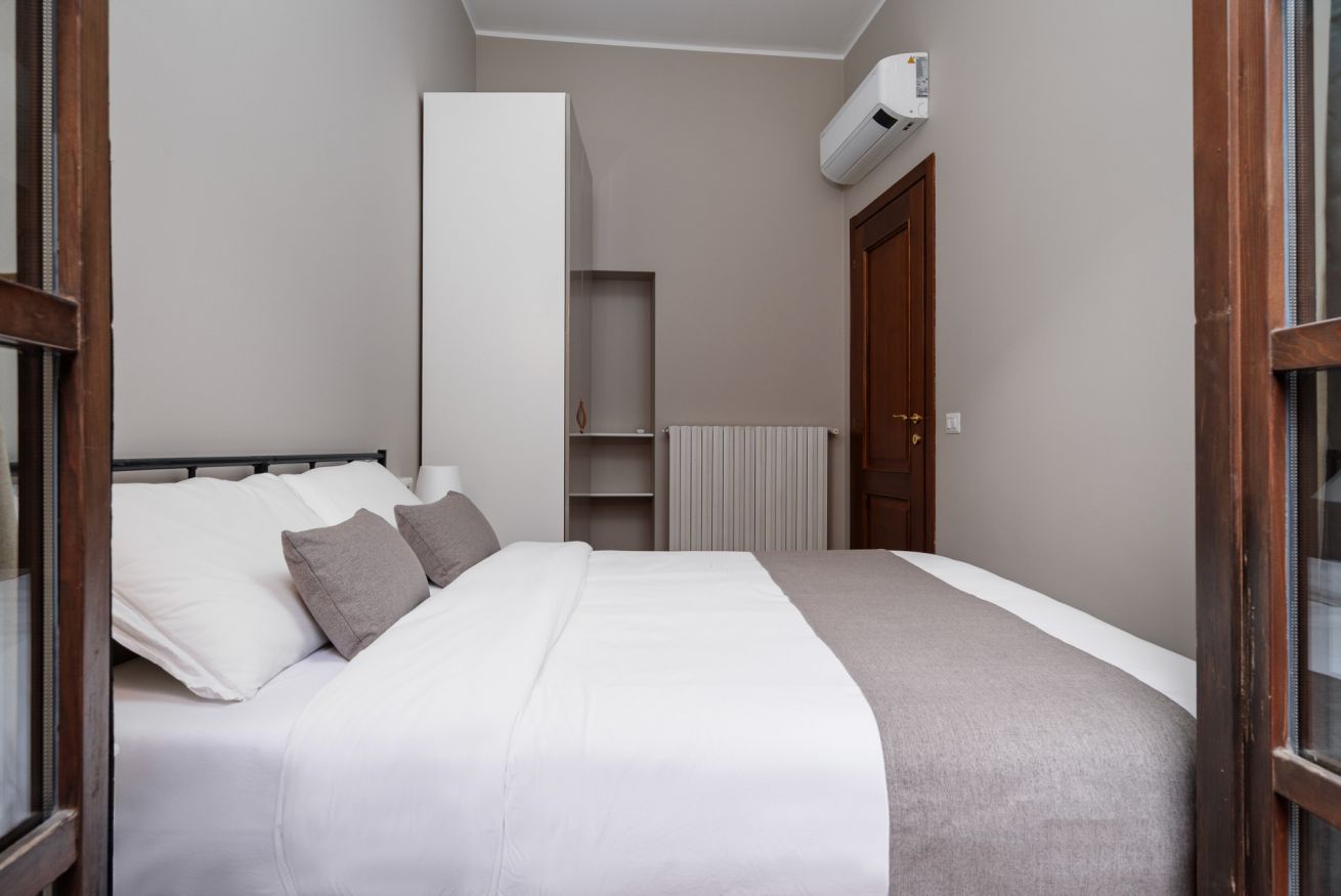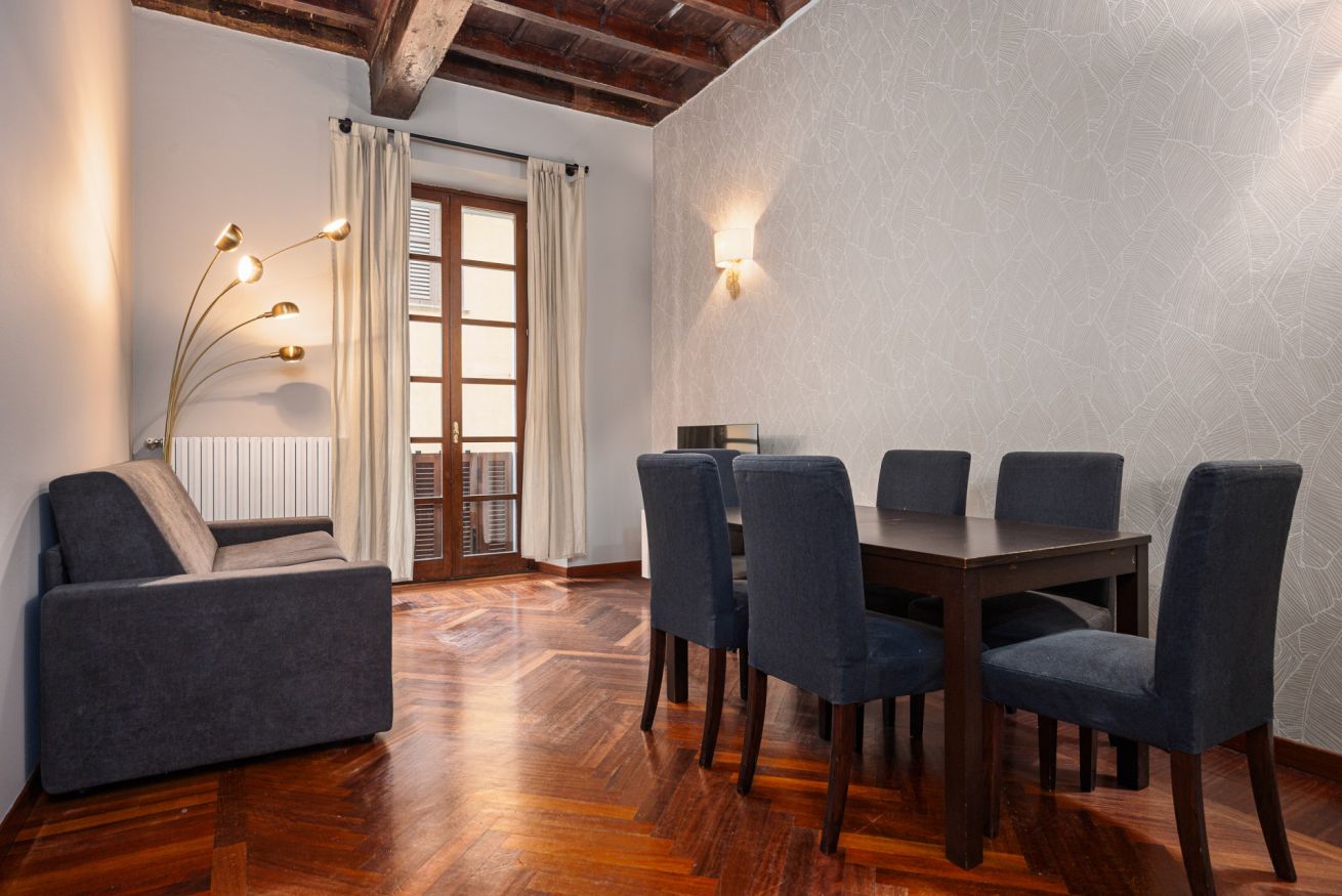 appartamento raffinato e luminoso nel cuore del centro storico di milano ideale per famiglie o gruppi di amici con due camere matrimoniali ampie e confortevoli salone spazioso con divano letto per due persone cucina moderna e attrezzata con forno frigorifero piano cottura microonde e utensili essenziali due bagni eleganti con doccia arredi curati e atmosfera accogliente posizione strategica, pochi passi da negozi ristoranti bar e mezzi di trasporto perfetto per vivere milano in comodità e stile